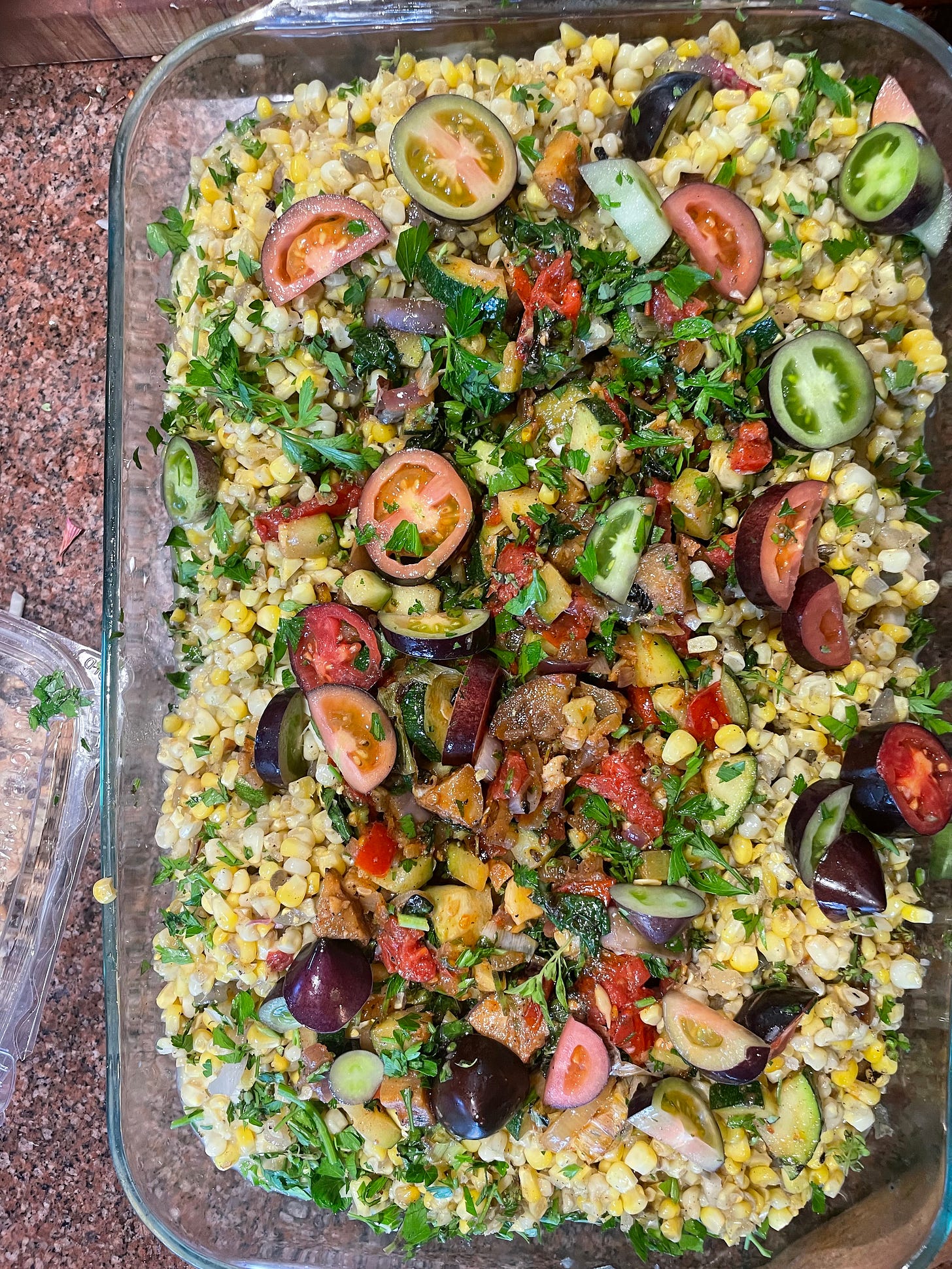 And one more tip from my catering days: lime zest and chives brighten corn beautifully, whether you zest lime butter and chives on hot corn or add them to corn salad….